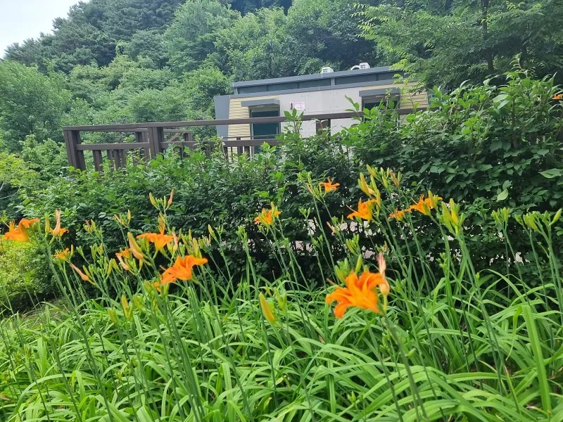 공주 은개골역사공원 산책길에 발견한 꽃입니다. 무슨 꽃인지는 잘 모르겠으나 색감이 쨍한 게 꽤나 아름다워 보였습니다.