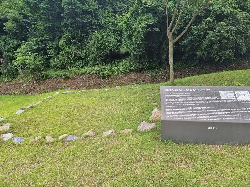 공주 은개골역사공원 산책 시 발견할 수 있는 각종 유적공간입니다. 유적터마다 상세한 설명이 안내되어 있어 산책과 역사 공부를 동시에 할 수 있었습니다. 위는 백제시대 1호 움집과 백제시대 나무방식창고로, 두가지 모두 터만 남아있는 느낌이었습니다.