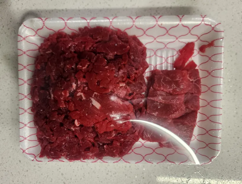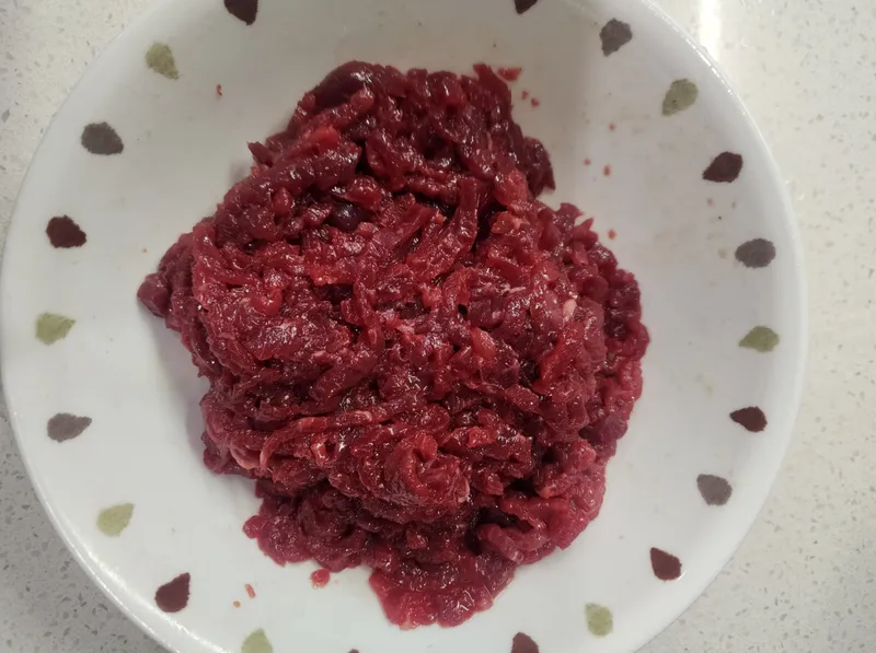 육회 500그램, 볶은 콩가루 백태 약간, 상추 한봉, 배 한개를 준비해 줍니다.
