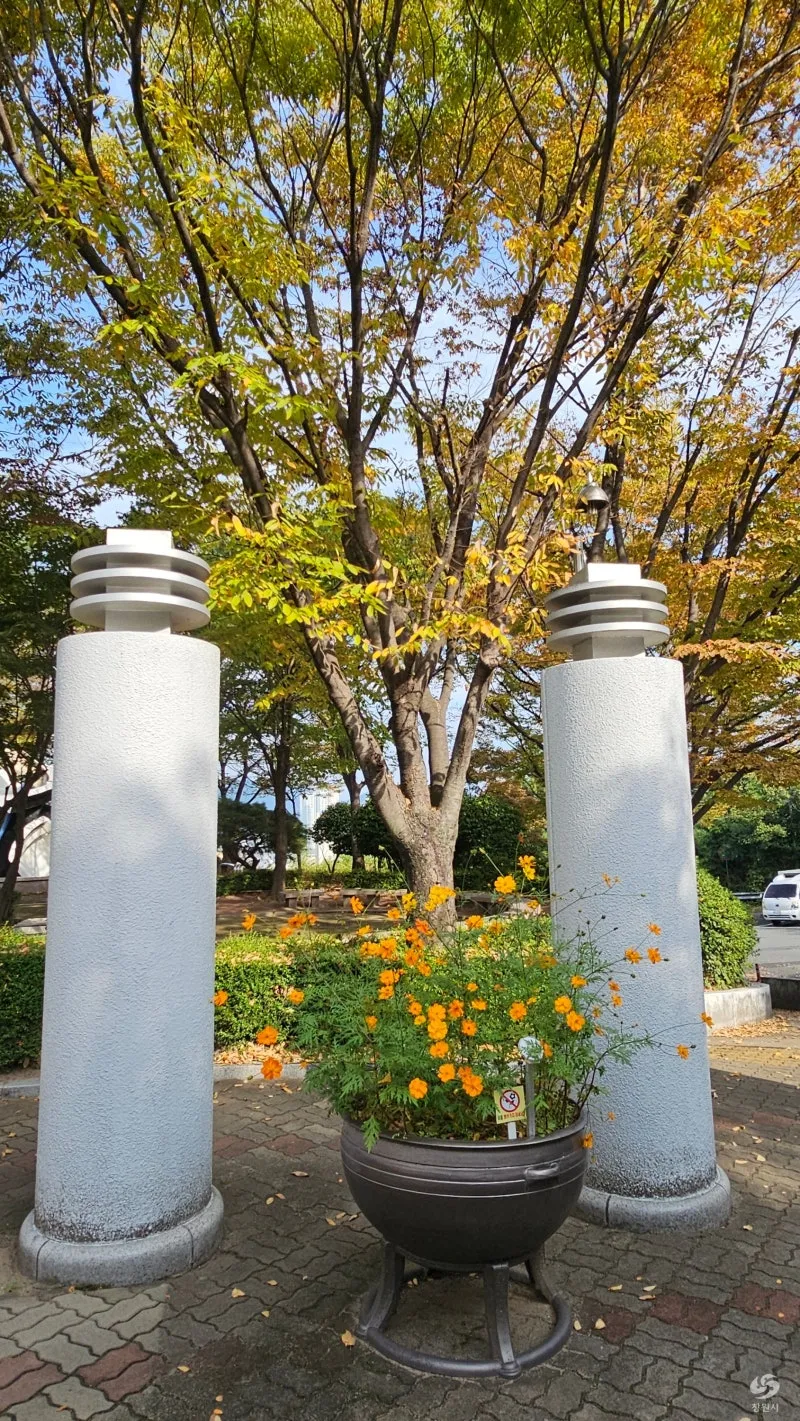 가을 단풍 든 나무들이 이곳저곳에서 방문객을 반깁니다.