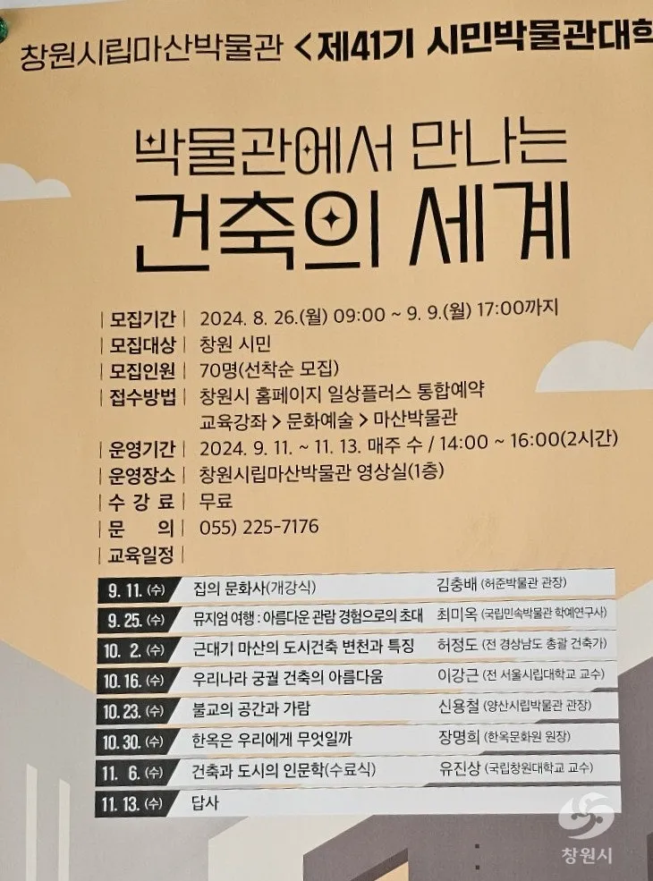 "박물관에서 만나는 건축의 세계"라는 주제로 제41기 시민 박물관 대학이 11월 13일까지 운영되고 있어요.