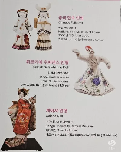 이번 특별전은 세계의 민속의상을 입고 있는 인형부터 아프리카 토착 신앙을 담은 목각인형, 탈을 쓰고 있는 인형, 풍속을 표현한 목각인형, 국제 행사 마스코트 인형까지 100여 점의 자료를 전시하고 있습니다.