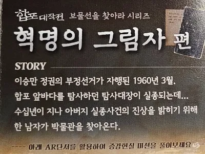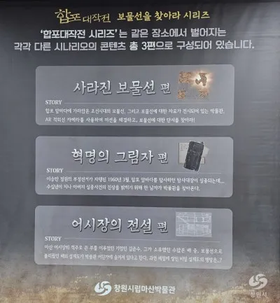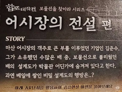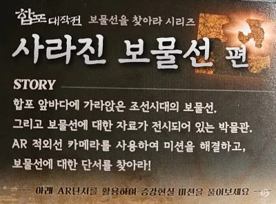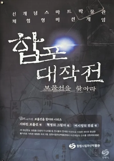 체험형 미션 게임인 "합포만 대작전ㅡ보물선을 찾아라"는 증강현실 게임으로 세 개의 시리즈물입니다.
