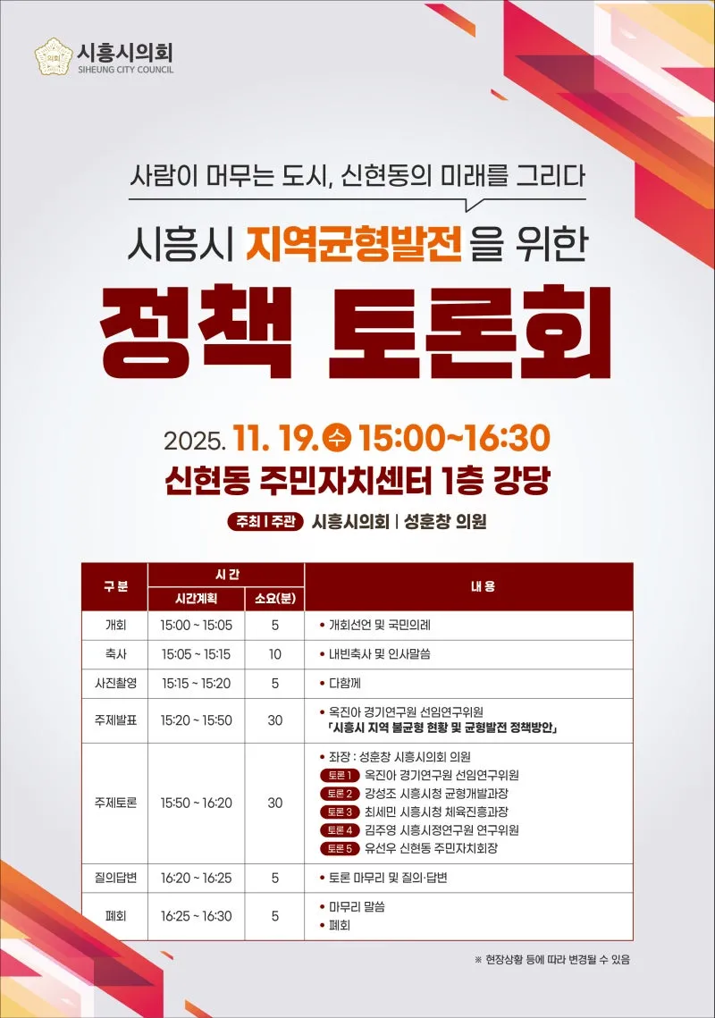 문화예술 창작환경 조성방안 & 시흥시 지역균형발전을 위한 '정책토론회' 개최 안내!