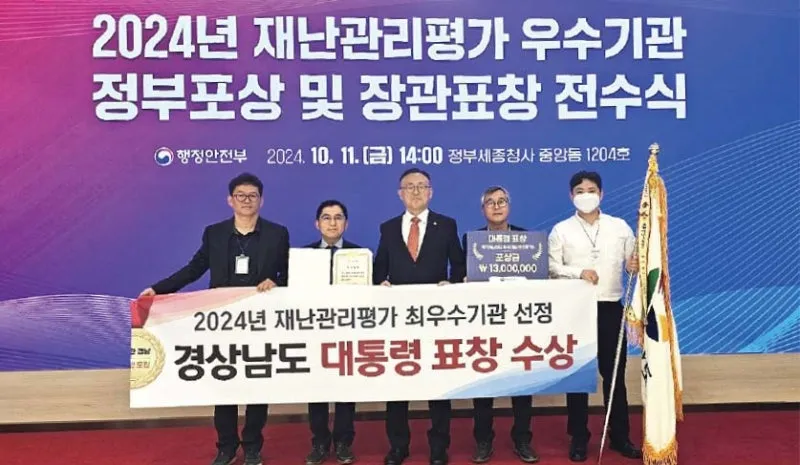 경남도가 행정안전부 주관 ‘2024년도 재난관리평가’에서 최우수 기관(1위)으로 선정돼 대통령 표창과 함께 특별교부세 2억 5000만 원을 확보했다. 이는 최근 4년간 태풍·호우 인명피해 ‘제로’ 등 재난관리 체계를 강화한 것이 결실을 거둔 것이다. 경남도가 이번에 최우수 기관으로 선정될 수 있었던 것은 재난 안전 대비에 철저히 준비하고 뛰어난 대응력을 보여 6개 분야 42개의 모든 평가지표에서 우수 등급을 받은 덕분이라는 평가다.