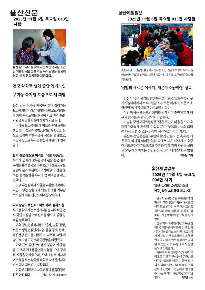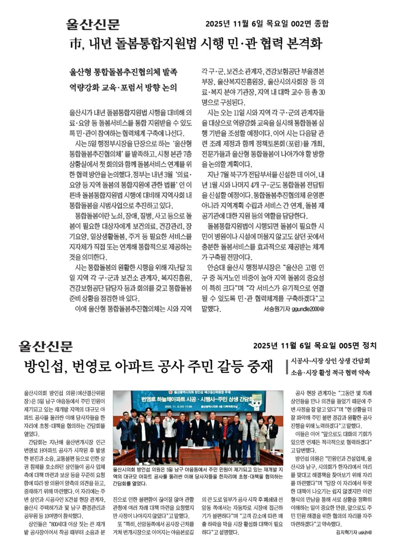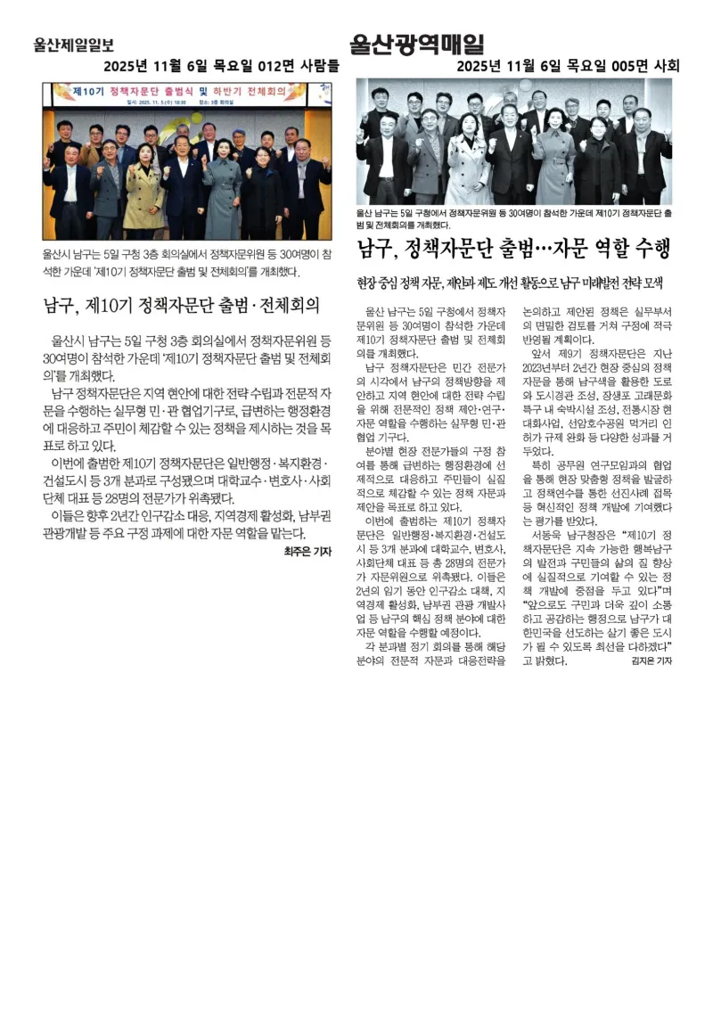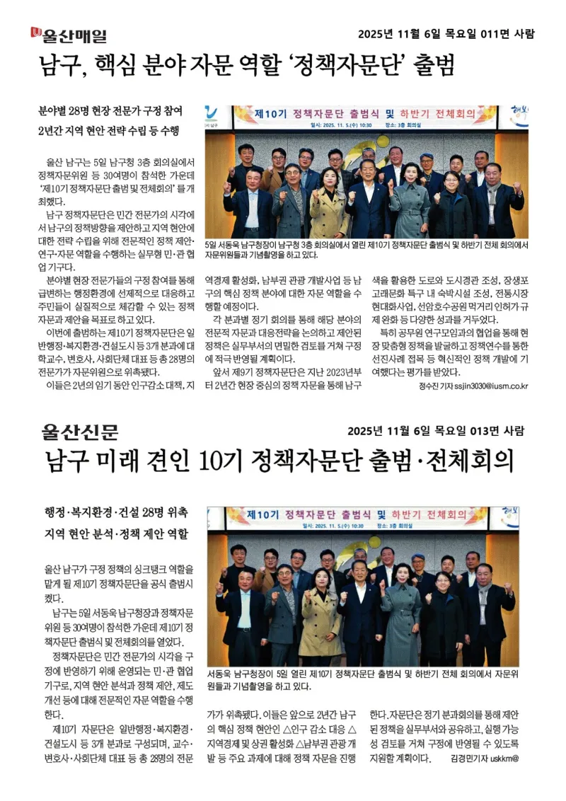 {"title":"[행복남구 오늘의신문] 핵심 분야 자문역할 정책자문단 출범 !!🧡 (11월 6일 목요일)","source":"https://blog.naver.com/ulsan-namgu/224066451207","blogName":"울산광역시..","domainIdOrBlogId":"ulsan-namgu","nicknameOrBlogId":"울산광역시남구청","logNo":224066451207,"smartEditorVersion":4,"lineDisplay":true,"meDisplay":true,"blogDisplay":false,"cafeDisplay":false,"outsideDisplay":false}