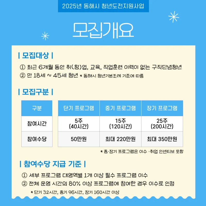 📞문의: 동해시 청년도전지원센터(☏535-7050, 521-7050)
