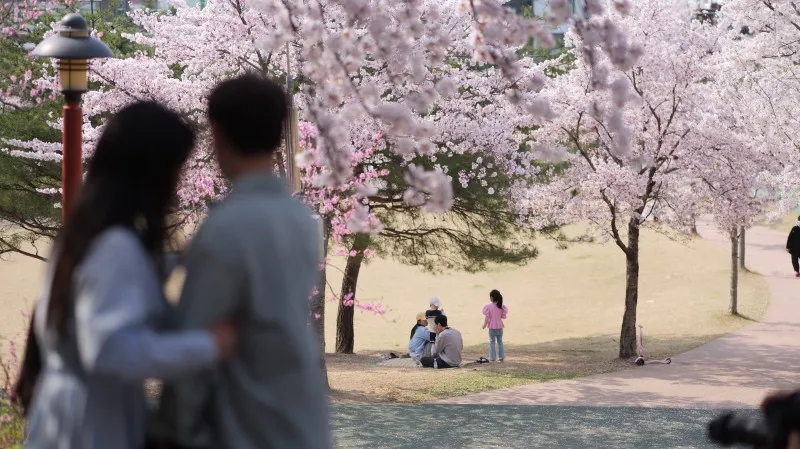 곳곳에 아름다운 벚꽃을 즐기러 오신 분들이 많이 계셨는데요, 공원 전체적으로 벚꽃이 피어있다 보니 따로 포토존이 마련되어 있지 않더라도 어디에서 찍어도 인생 사진을 남길 수 있었습니다.