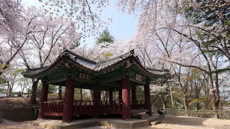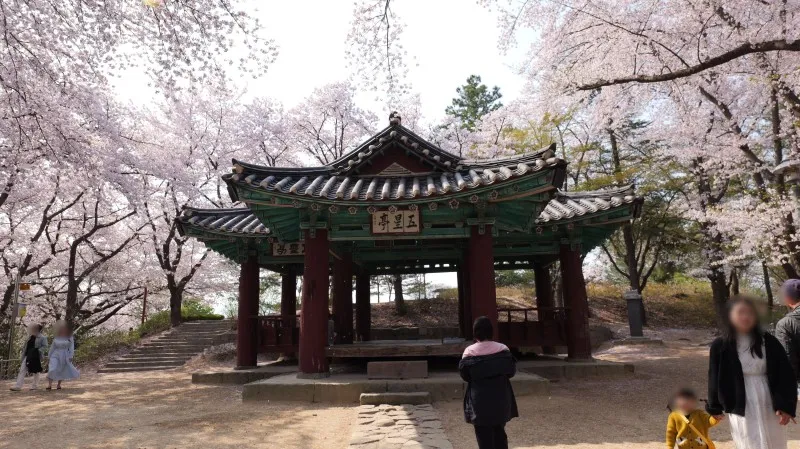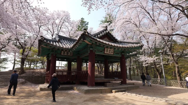 남산근린공원에서 벚꽃을 보며 천천히 산책하다가 나온 계단을 따라 올라가니 자그마한 정자가 하나 나왔는데요, 이 정자의 이름은 오성정이라고 하는데, 조선 인조 5년에 처음 지어졌으며 유형문화재로 지정되기도 한 정자입니다.
