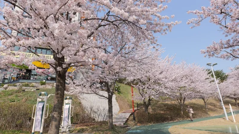 남산근린공원은 아름다운 벚꽃을 볼 수 있을 뿐만 아니라 워낙에 쾌적하게 잘 조성된 공원이어서 가벼운 운동을 하거나 산책하기에도 좋은 곳 이었는데요, 곳곳에 운동할 수 있는 기구들도 마련되어 있어서 인근 주민분들이 오셔서 운동을 하고 계신 모습도 볼 수 있었습니다.