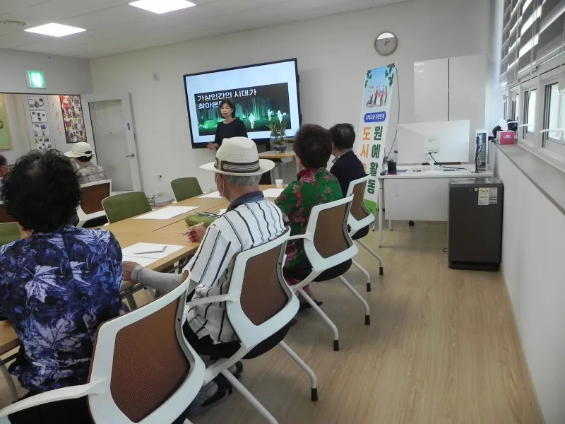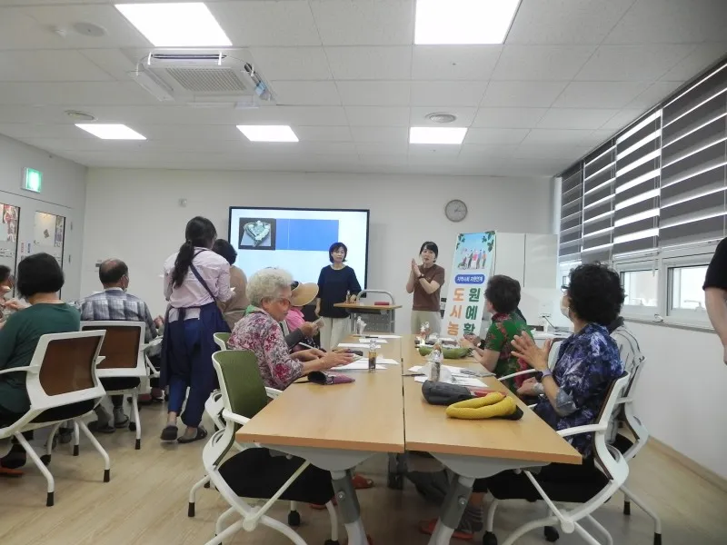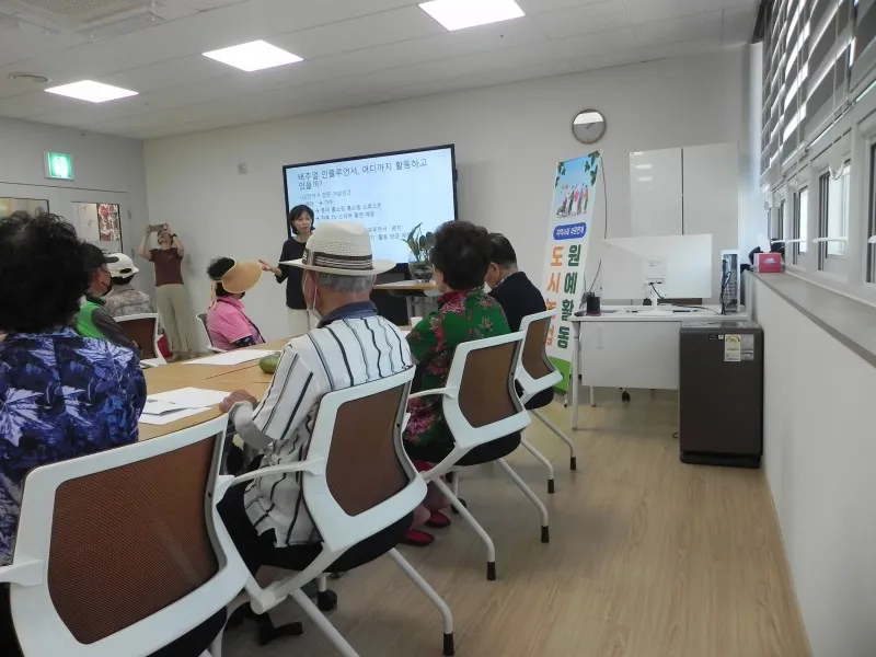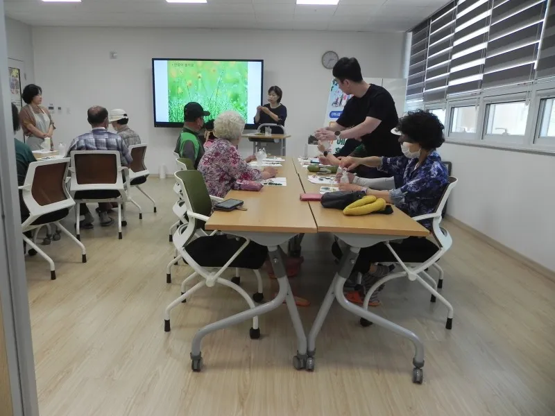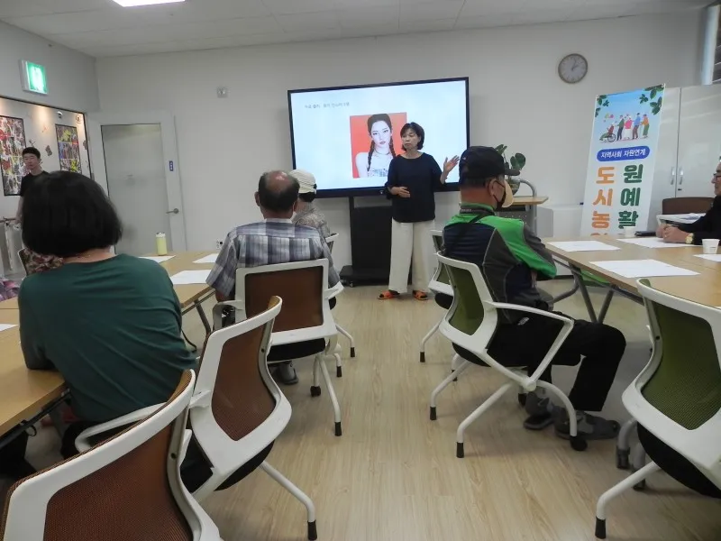 때마침 쉼터 1 강의실에서는 지역사회 자원연계프로그램으로 도시농업 원예 활동 교육이 진행되고 있었습니다.