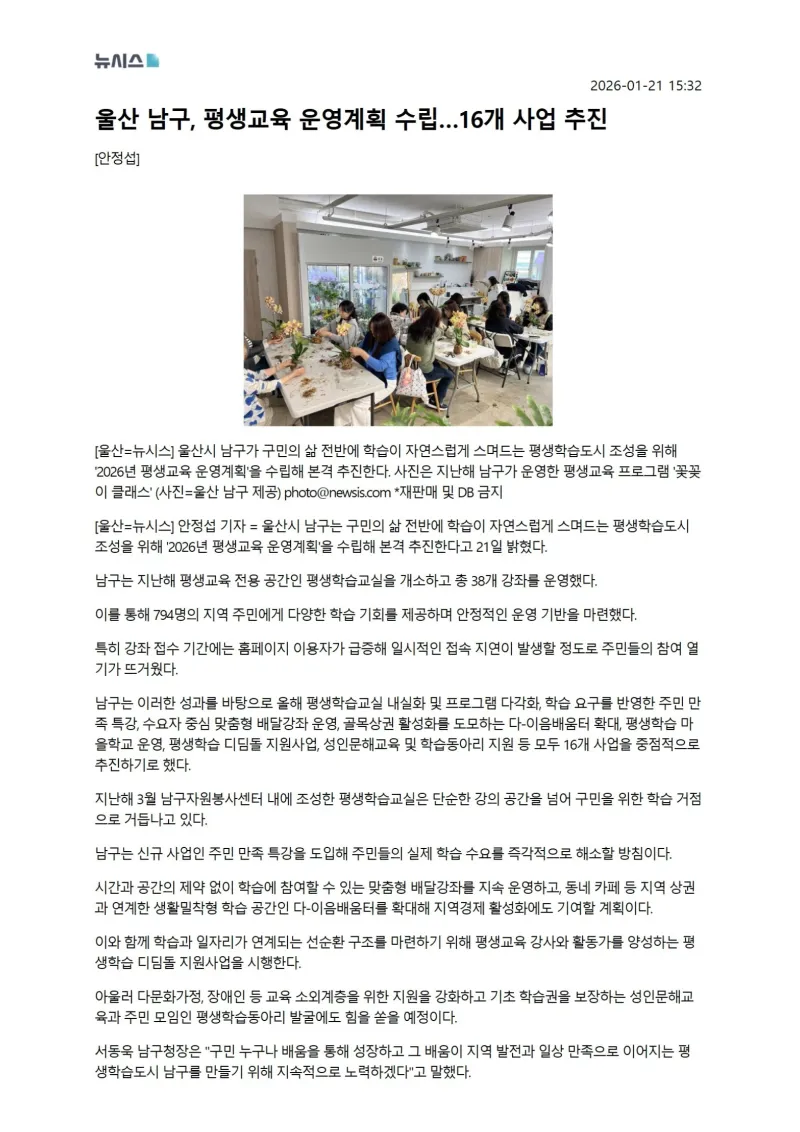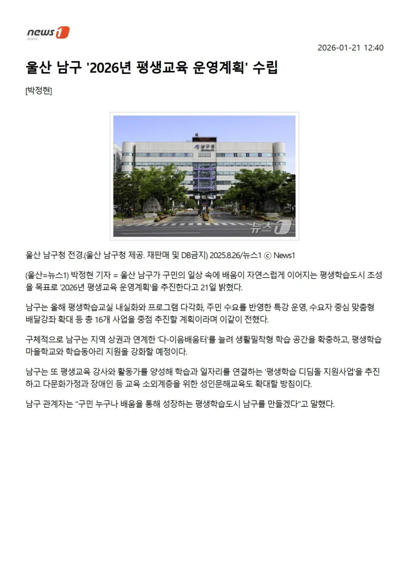 {"title":"[행복남구 오늘의신문] 평생학습도시 남구 기대해주세요!👨👩👧👧👏👏 (1월 22일 목요일)","source":"https://blog.naver.com/ulsan-namgu/224155827253","blogName":"울산광역시..","domainIdOrBlogId":"ulsan-namgu","nicknameOrBlogId":"울산광역시남구청","logNo":224155827253,"smartEditorVersion":4,"cafeDisplay":false,"lineDisplay":true,"blogDisplay":false,"outsideDisplay":false,"meDisplay":true}