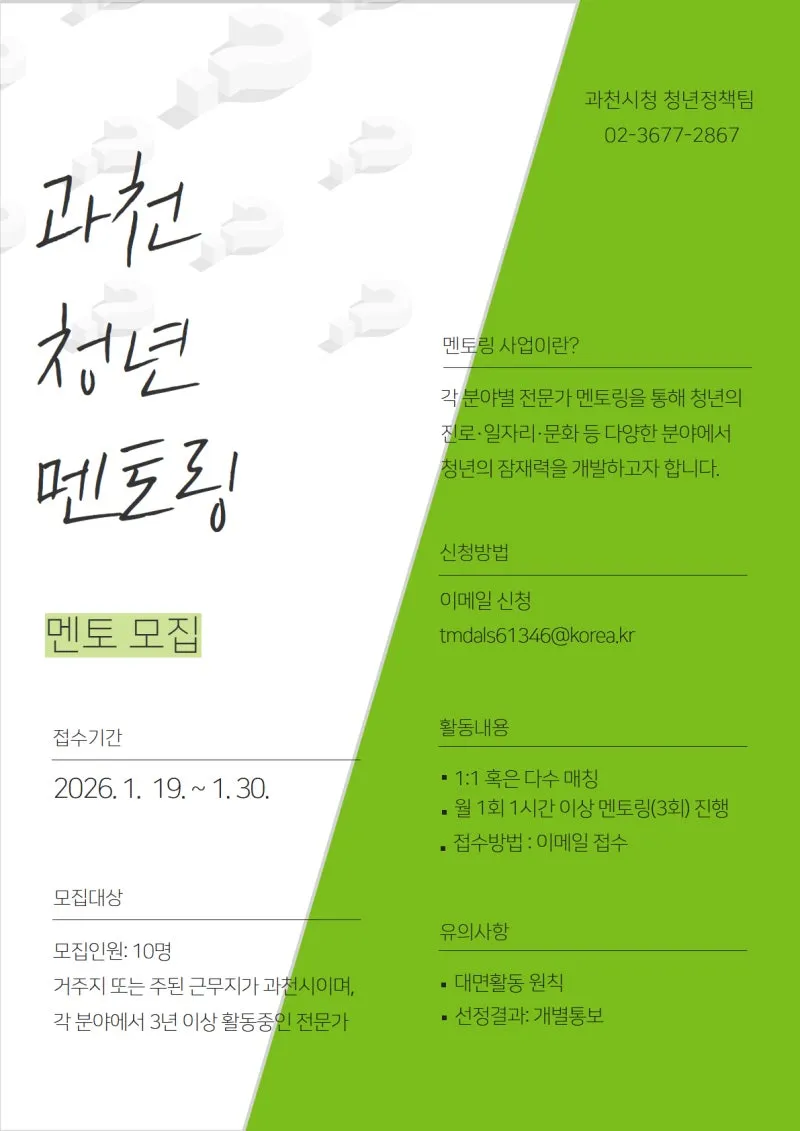 「2026 과천시 청년 멘토링 사업」 💡 멘토를 모집합니다