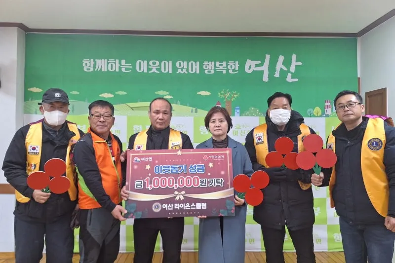여산라이온스클럽(회장 윤수창)은 23일 여산면 행정복지센터를 찾아 이웃돕기 성금 100만 원을 기탁했다.