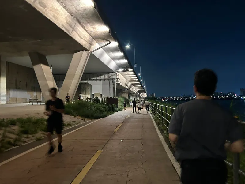한강 공원은 워낙 규모가 커서 다양한 방향으로 사람들이 러닝을 즐기고 있답니다.