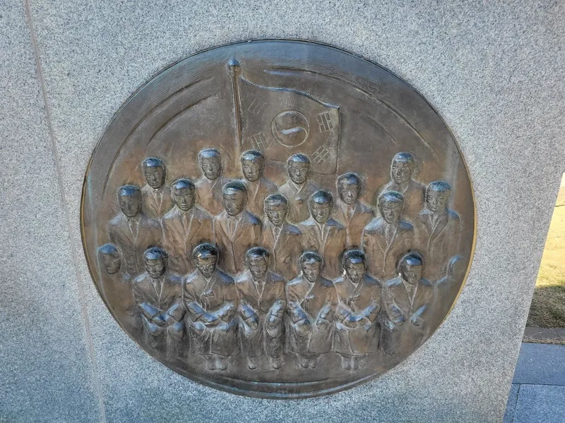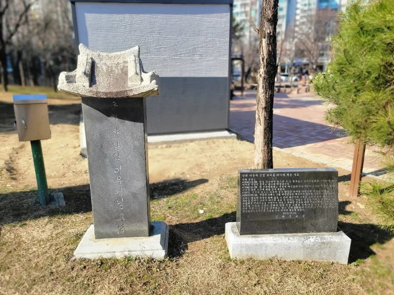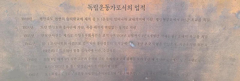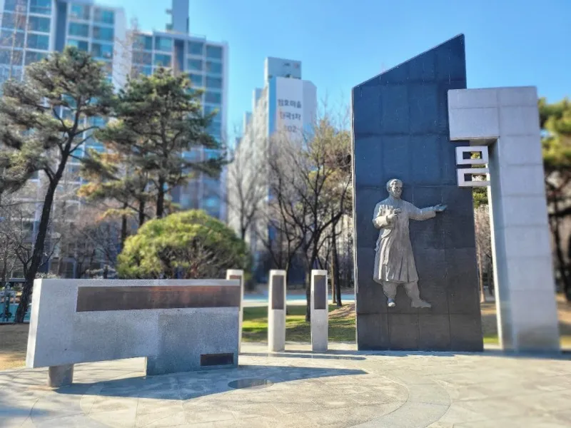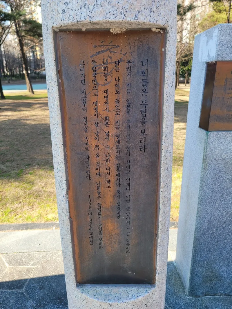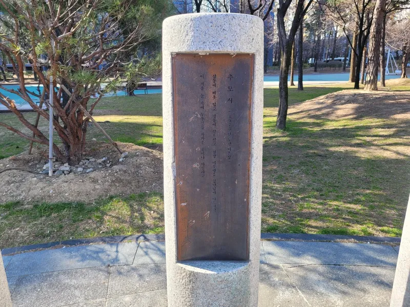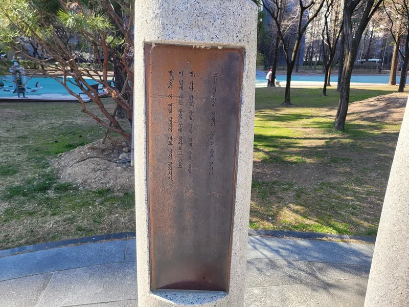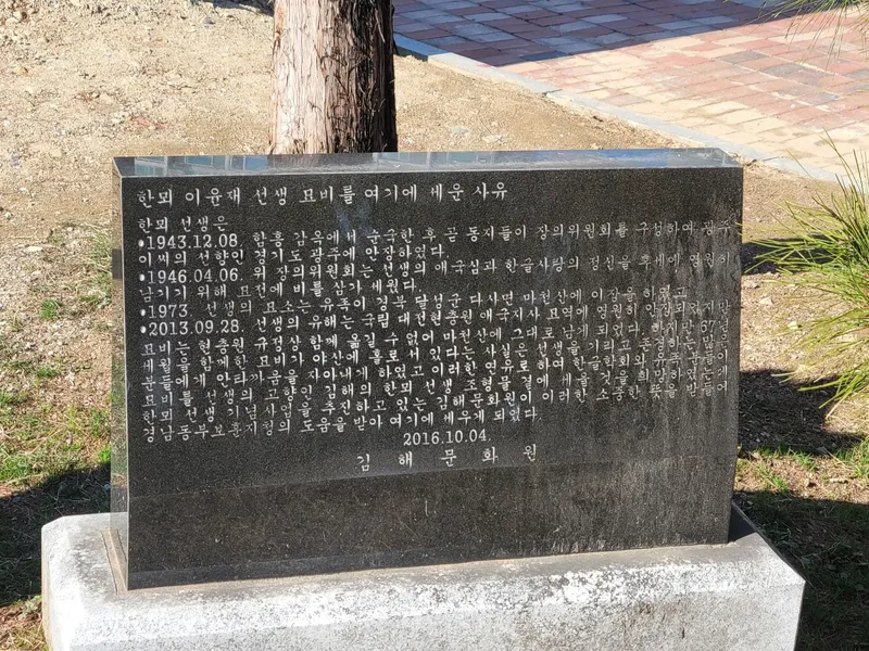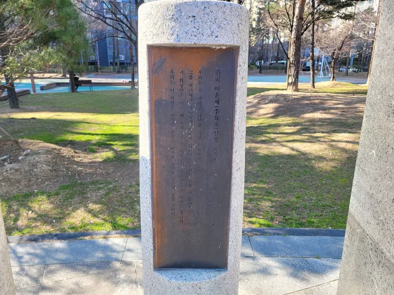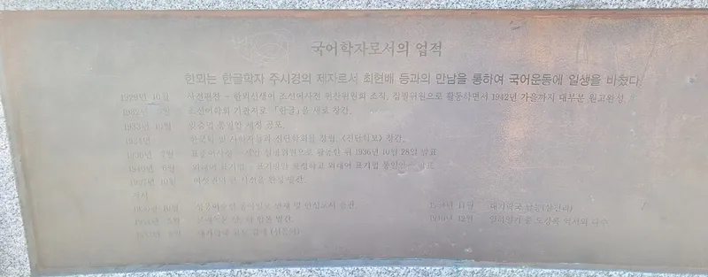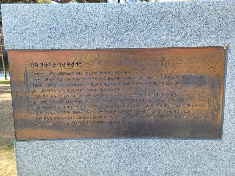 공원의 중간에는 한뫼 이윤재 선생을 기리는 업적과 묘비가 있습니다.
