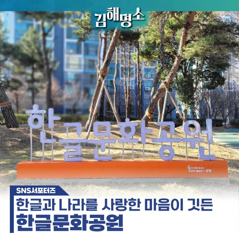 김해시청 홈페이지 - 보도자료: "이제 한글문화공원으로 불러주세요" 김해시 한글박물관 뒤 공원 명칭 변경(23.10.31.)