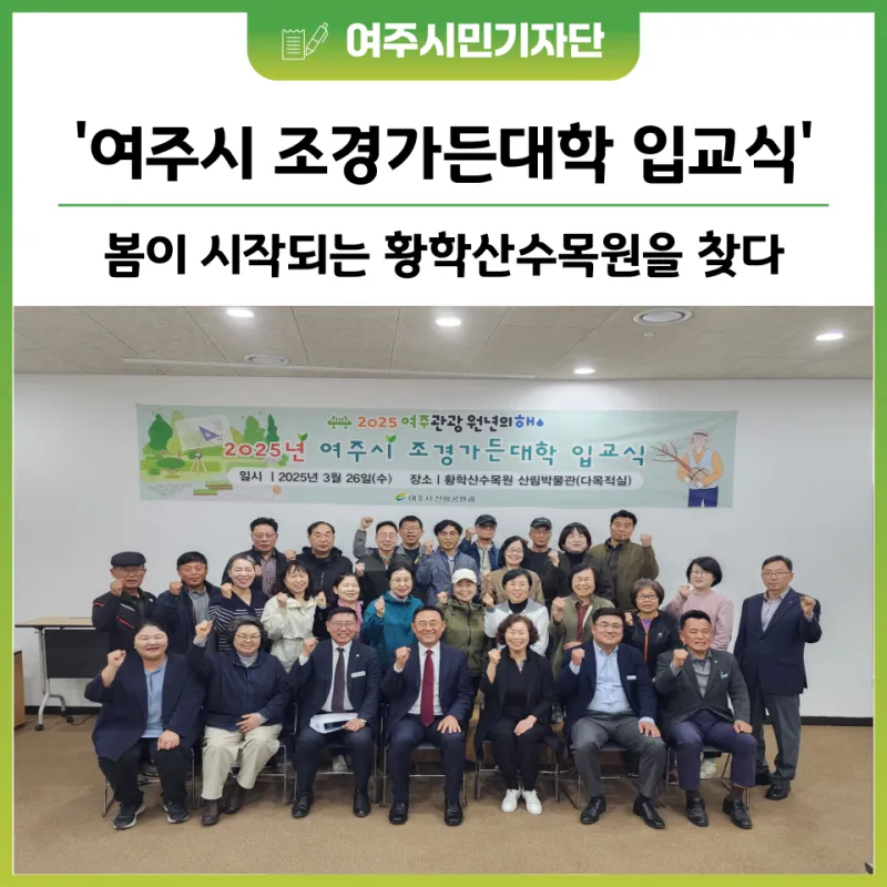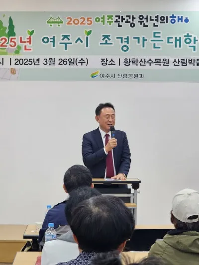 여주시는 지난 3월 26일 오후 2시, 황학산수목원 산림박물관 2층 다목적실에서 '2025 조경가든대학' 입교식을 개최하고, 정원문화 도시로의 비전을 재확인했다.