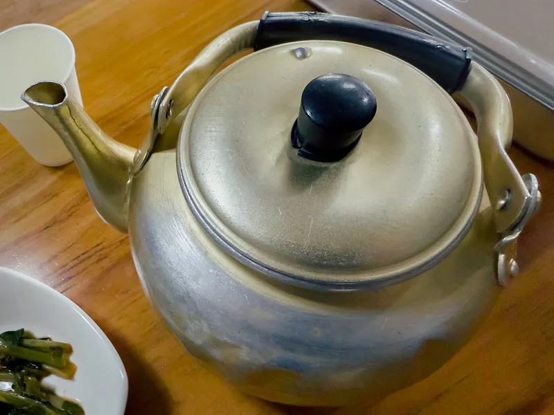 자리에 앉으면 세월이 그대로 느껴지는 양은 주전자에 따끈한 메밀 물을 가득 내어주시는데, 겨울에 먹으니 이 맛 또한 일품입니다.