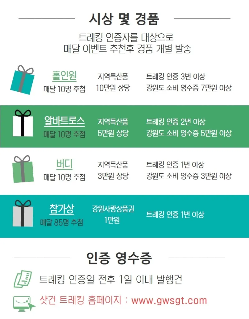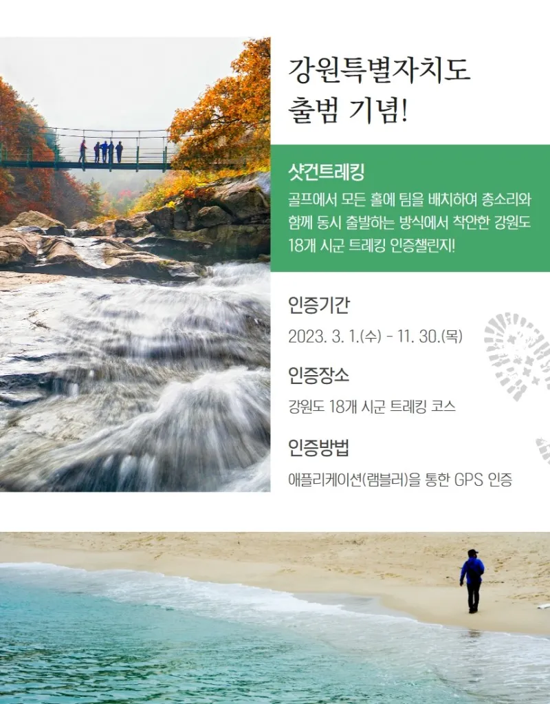 강원특별자치도 출범 기념을 기념하여 트레킹 인증 챌린지 이벤트를 진행합니다.