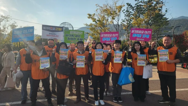 경상남도는 5일 제25회 마산가고파국화축제장에서 ‘바가지요금 OUT! 정직한 가격 IN! 즐거운 축제’를 슬로건으로 바가지 요금근절을 위한 민관 합동 점검 및 캠페인을 벌였습니다.