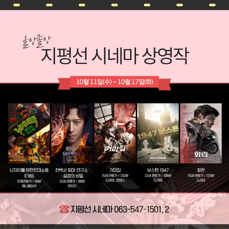 #지평선시네마 #닌자터틀_뮤턴트대소동 #천박사퇴마연구소 #거미집 #보스턴1947 #화란 #지평선김제 #김제시 #김제