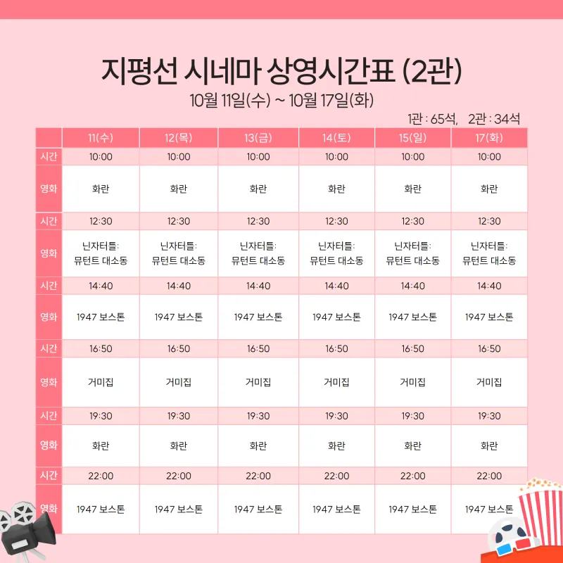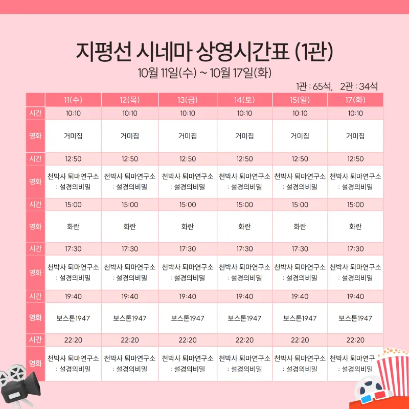 지평선 시네마 상영시간표 안내(10월 11일 ~ 10월 17일)