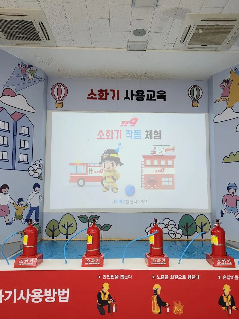 직접 화재현장에 소화기로 뿌려서 불끄는 체험도 했는데