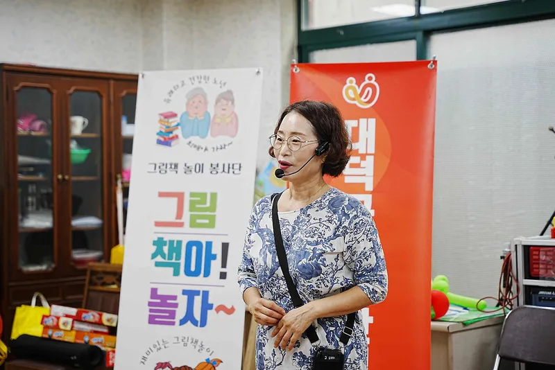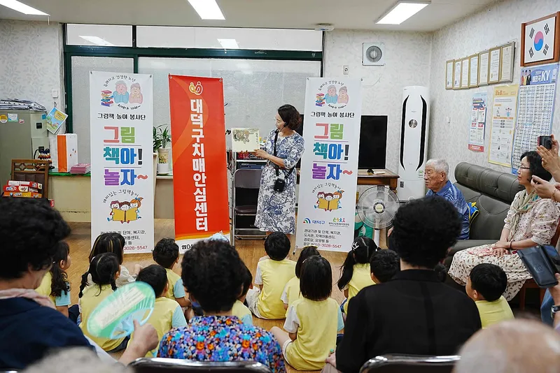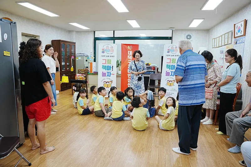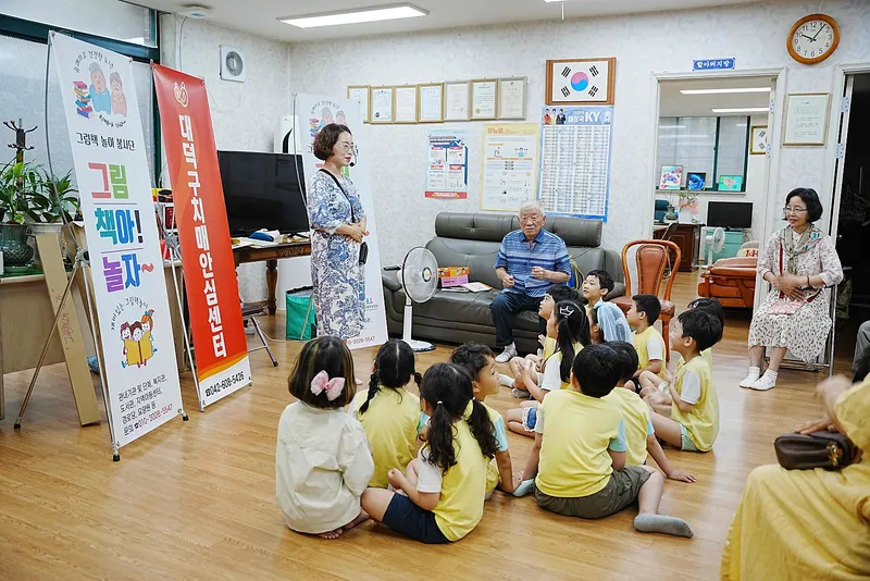 대덕구 선비마을아파트 4단지 경로당에서 노인과 아이들이 함께 그림책 이야기를 듣는 시간을 가졌습니다.