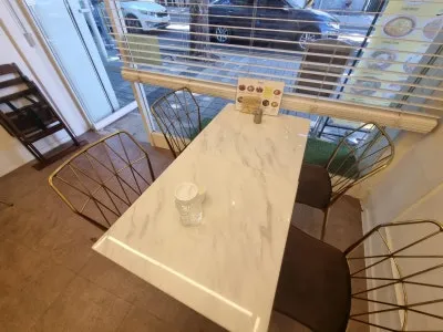 출입문을 열고 안으로 들어가서 보니까 외부 간판과는 또 다른 실내 인테리어가 보였고, 화이트 톤으로 맞추다 보니까 깔끔함이 먼저 눈에 보였고, 테이블도 그런 깔끔함에 조화를 이룰 수 있는 디자인이라서 그런지 되게 매력적이었습니다.