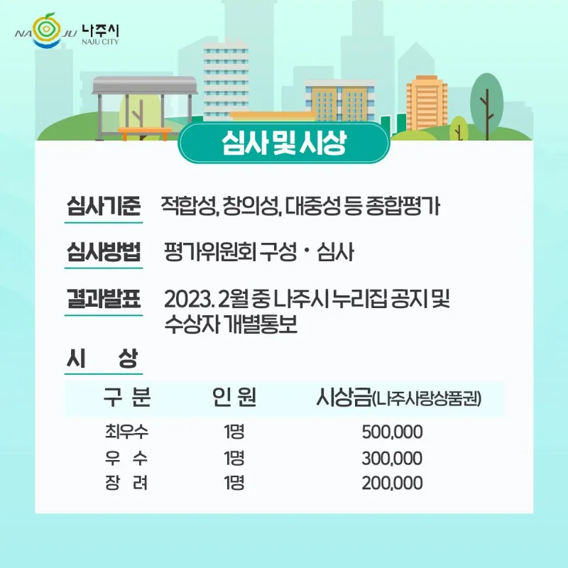 2023. 2월 중 나주시 누리집 공지 및 수상자 개별통보