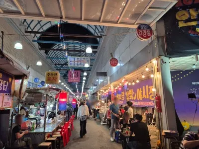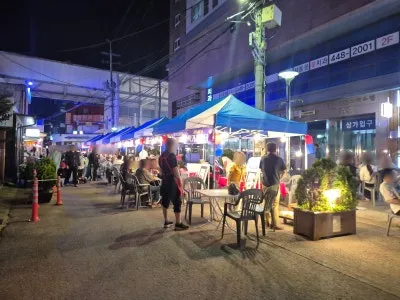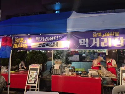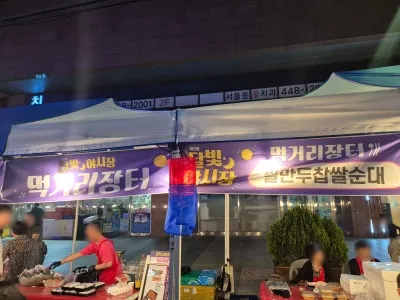 야시장 대표 메뉴들이 줄지어 있었는데요.