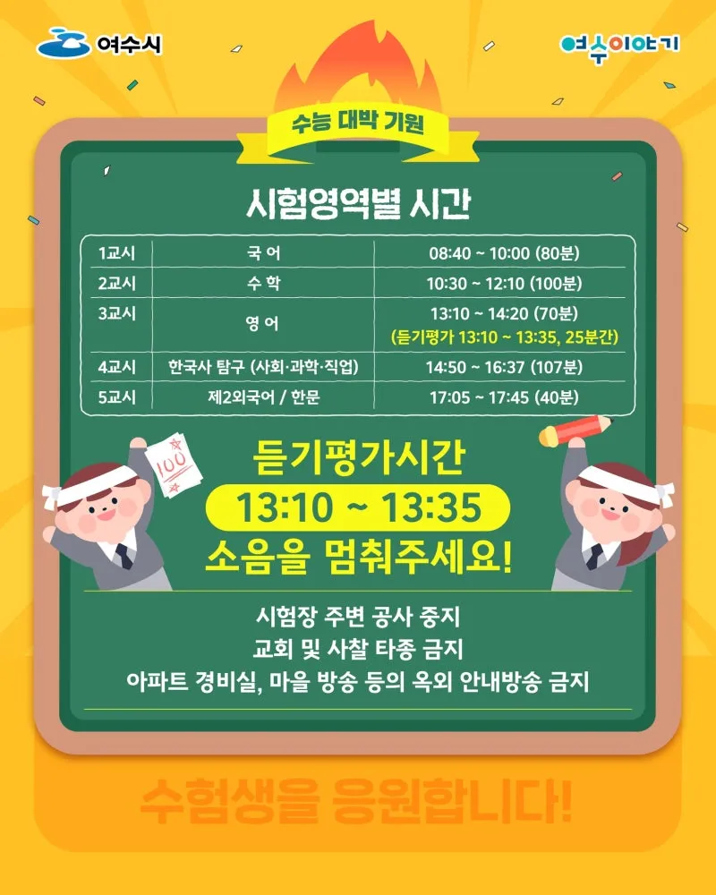 영어 듣기평가 시간(13:10~13:35)에는 소음을 멈춰주세요‼️