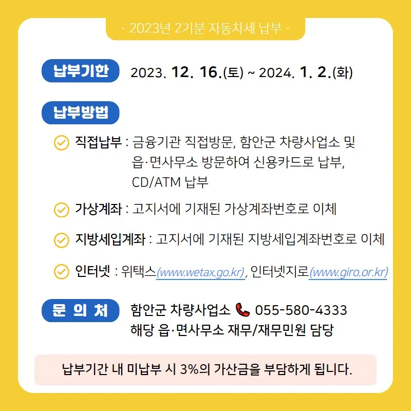 12월은 2023년 2기분 자동차세 납부의 달📢
