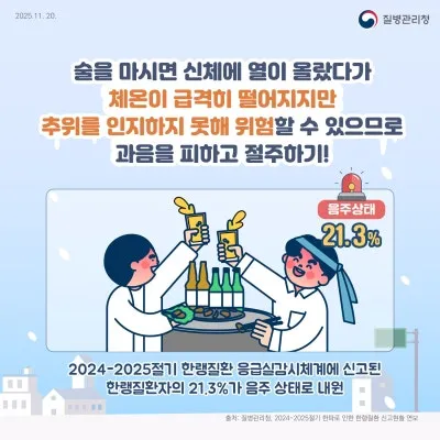 한랭질환자의 21.3%는 음주 상태에서 발생 ⚠️