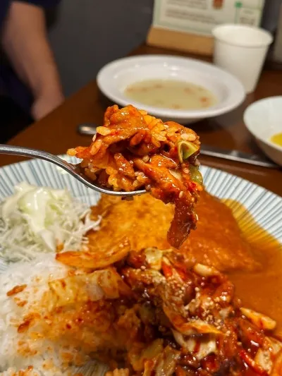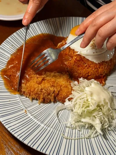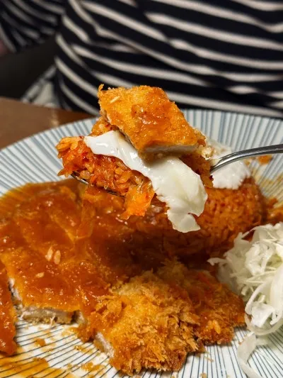 한국인이라면 좋아할 수 밖에 없는 김치볶음밥+돈까스 조합은 뭐.. 설명이 필요한가요❓ 수저 위에 밥+달걀프라이+돈까스로 탑 쌓은 사진을 보니 먹잘알이 틀림없네요😎