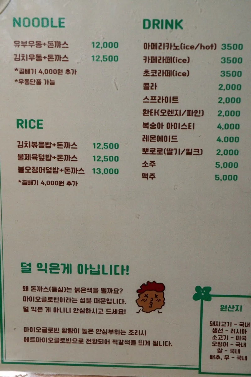38년간 손님들의 발길이 끊이지 않았던 <행운돈까스>는 가게 이름처럼 클래식한 경양식 돈까스가 맛있는 노포맛집이었는데요. 돈까스에만 국한되지 않고 다양한 메뉴들을 조합해서 먹을 수 있다는 것도 매력적이었어요🥘 여러 명이서 방문해 취향껏 주문한 뒤 서로 나눠먹으면 더 좋겠죠?