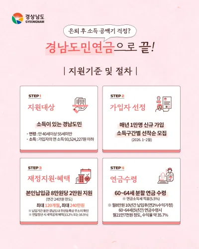도민의 은퇴 후부터 공적연금 수령 전, 소득 공백기를 메워주고