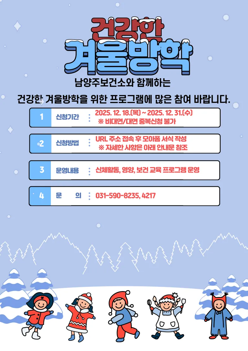 남양주보건소와 함께하는 『건강한 겨울방학』 참가자 모집
