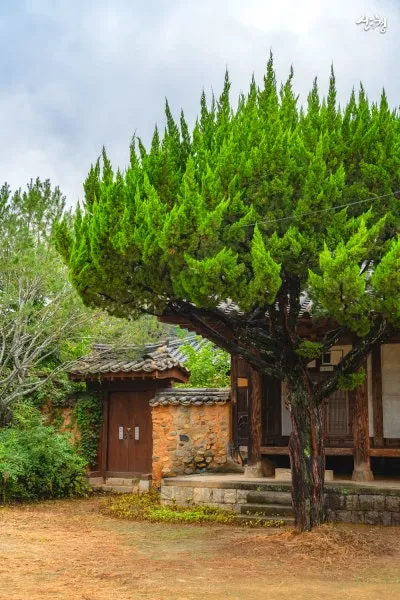 이 마을에는 700년 된 매화나무와 600년 된 감나무가 자라 있습니다.