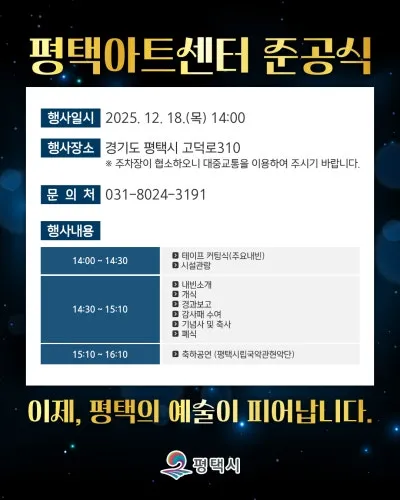 평택의 문화가 새롭게 시작되는 순간에 함께하시고, 자리를 빛내 주시면 감사하겠습니다.