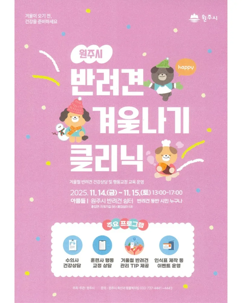 원주시 반려견 겨울나기 클리닉으로 따뜻한 겨울 준비하세요.