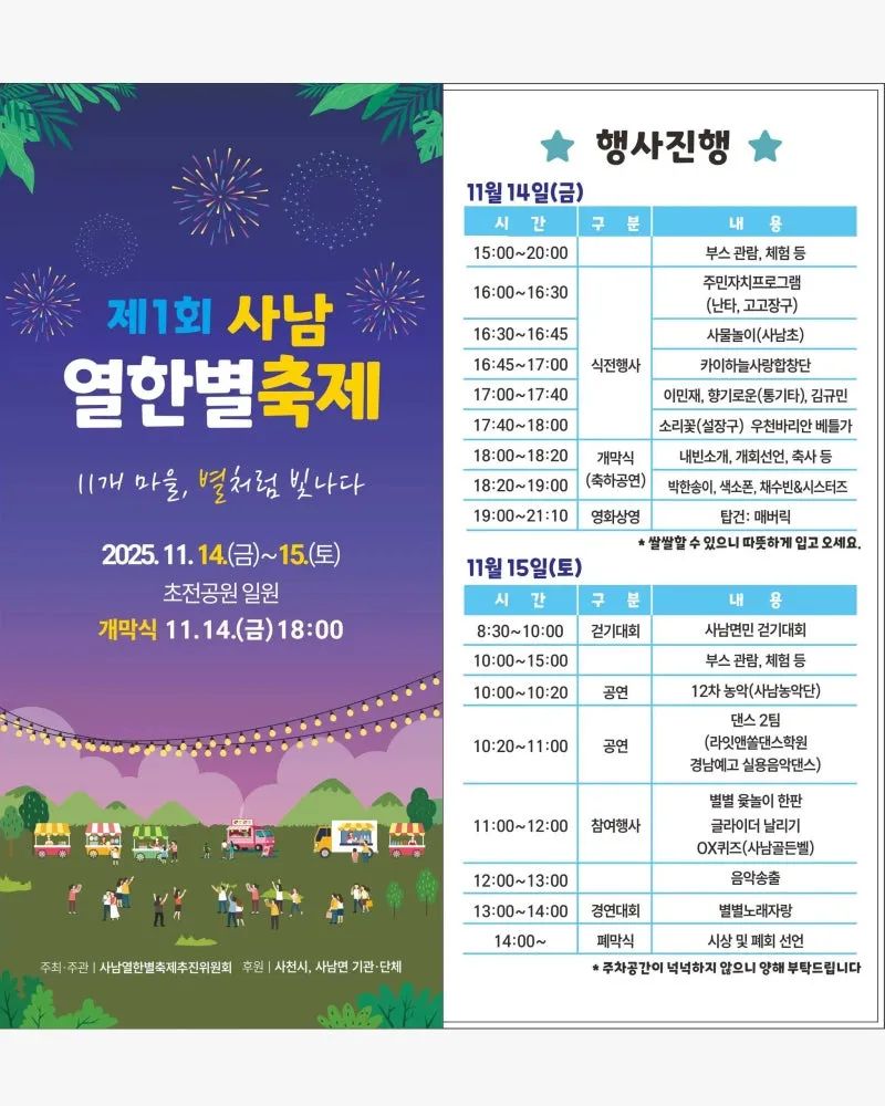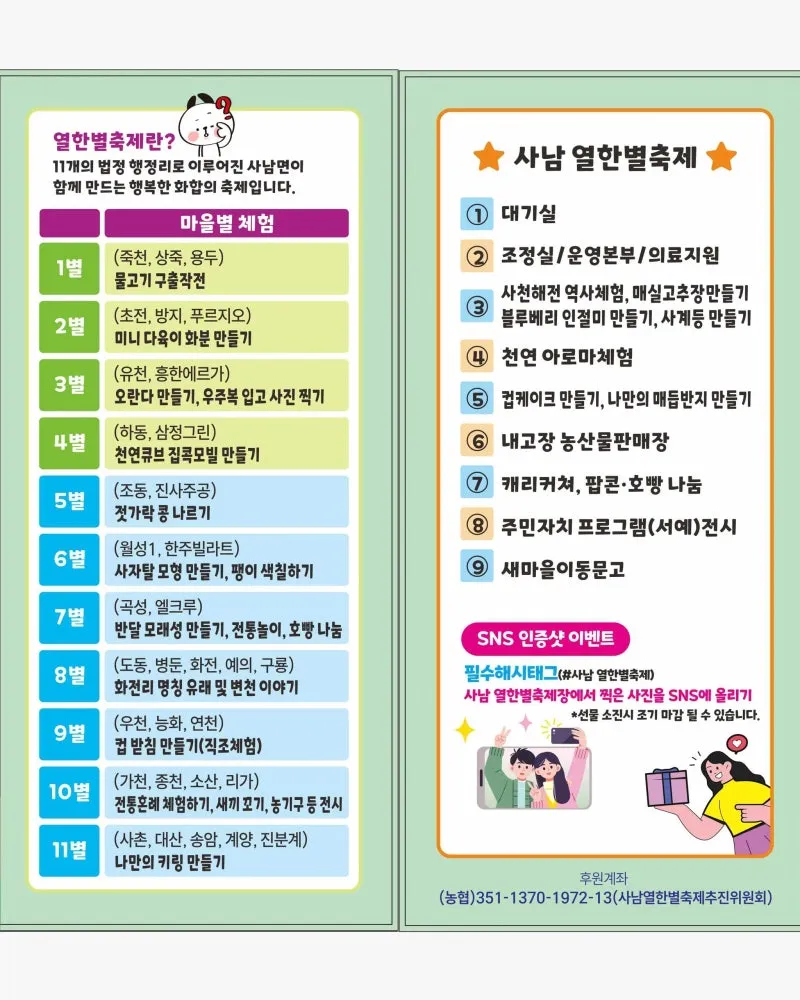 사천시 사남면에서 처음으로 열리는 제1회 사남 열한별축제!