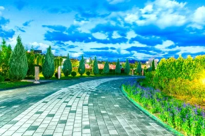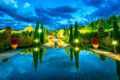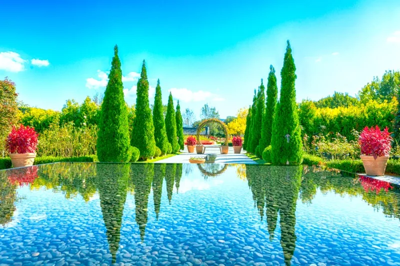 짙푸른 가을 하늘이 페르시아 정원 수반 위에