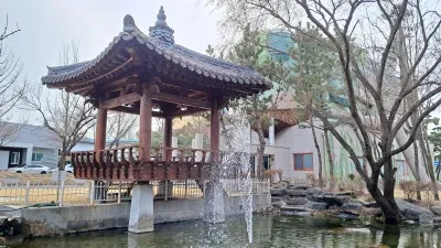 이곳에는 커다란 잉어들이 사는 작은 연못도 있어요.