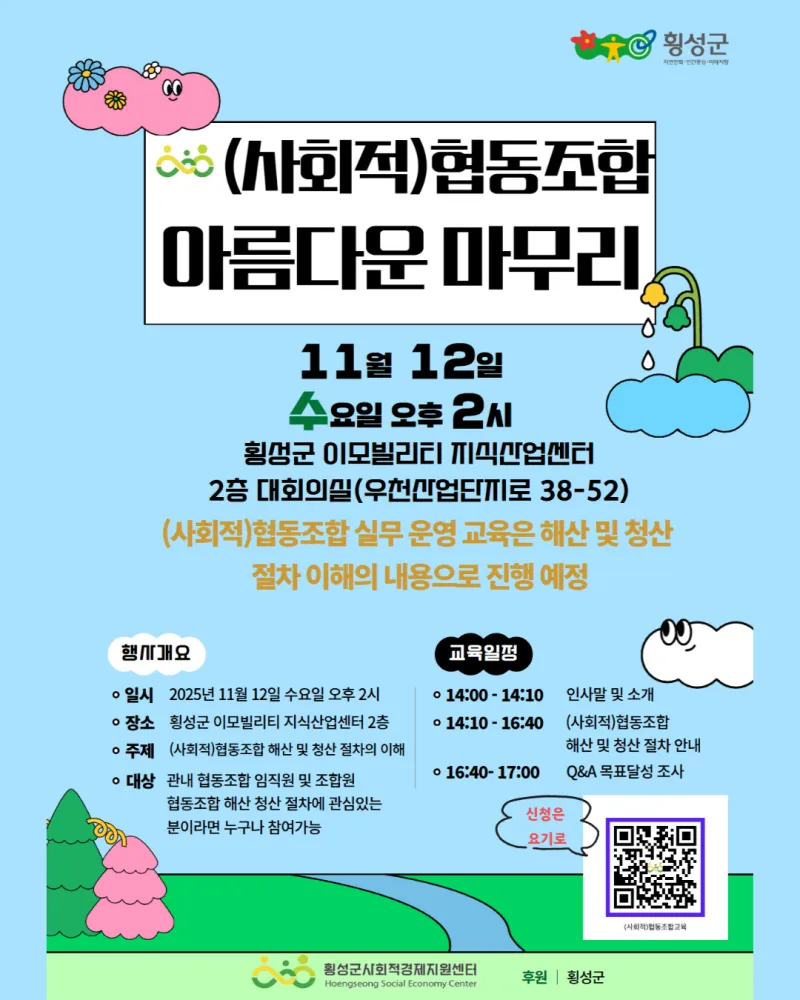 #횡성군 #사회적경제 #협동조합 #해산청산교육 #무료교육 #횡성군사회적경제지원센터