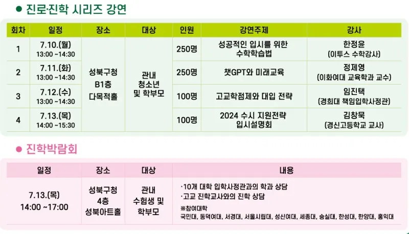 #성북구교육주간 #진로진학강연
