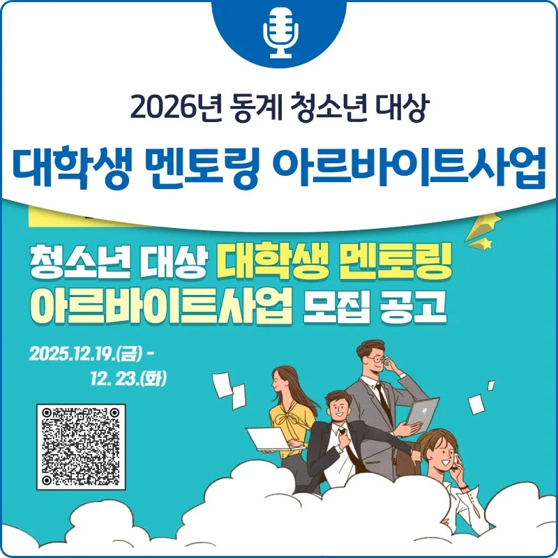 2026년 동계 청소년 대상 대학생 멘토링 아르바이트사업 모집 공고