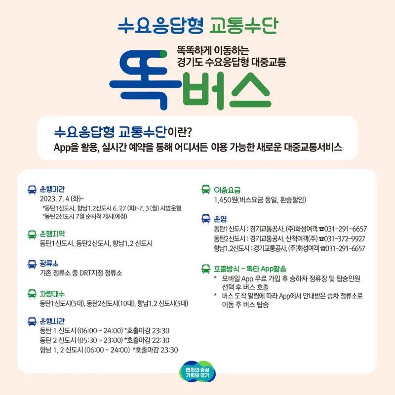 경기도형 DRT 운송사업(화성시 똑버스) 신규 개통!