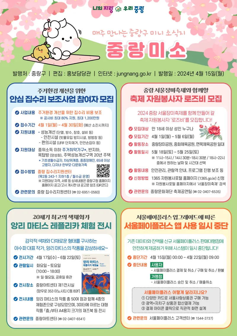 매주 만나는 중랑구 미니 소식지 「중랑미소」 ('24. 4. 15.)